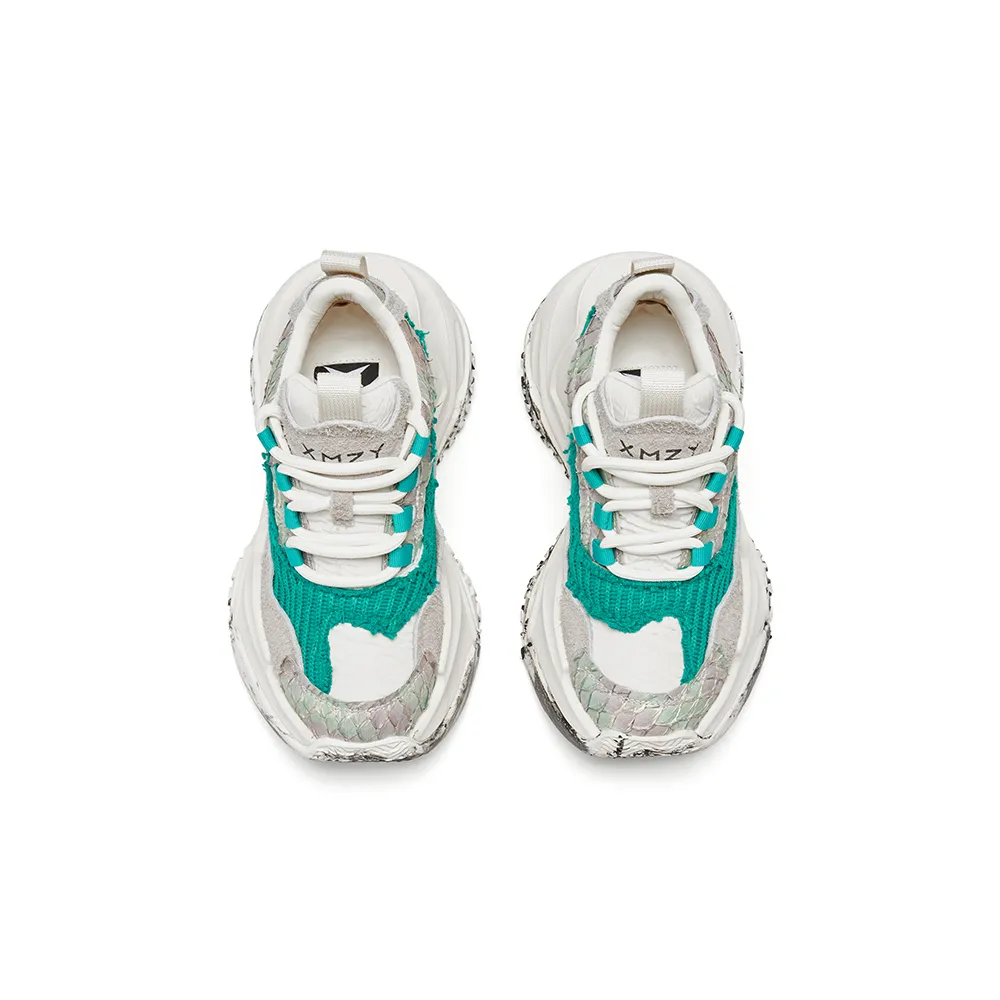 Upper Material: Fish leather, snowflake nubuck,washed knit